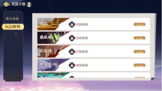 说明:战力养成板块可以告诉玩家在当前阶段还有那些可以提升战力的地方;玩法解锁板块是预告在接下来将会解锁的功能