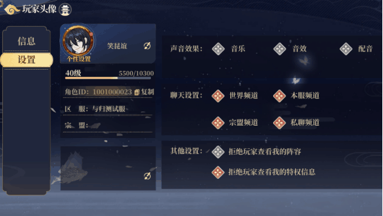 作用:展示玩家基本信息,设置游戏的声音