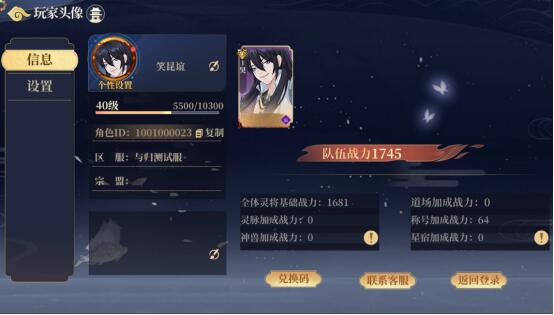 功能:打开/关闭音乐、音效、配音;联系客服、填写兑换码、注销登陆
