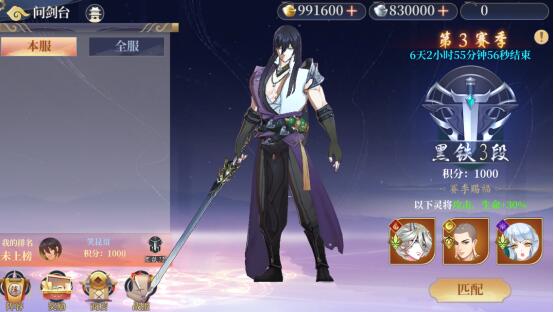 说明:通过与其他玩家战斗,争夺问剑台排名,名称越高奖励越丰富,每次会根据自己当前的积分随机匹配一名对手,战胜对手后自己的积分将增加,自己也可以设置一个防守阵容用来应对其他玩家的挑战。