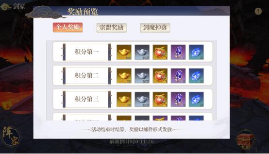 奖励:在有效时间内达到规定的名次,结算后通过邮件方式发放对应的奖励