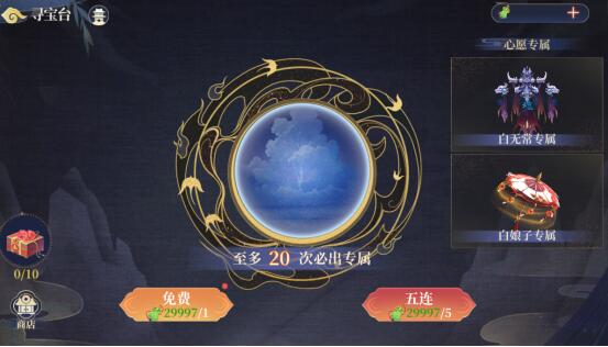 功能:单次抽取,五连抽取、设置心愿单、购买寻宝令、开启寻宝宝箱