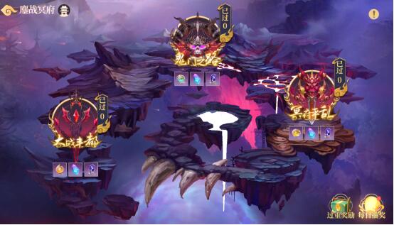 说明:鏖战冥府分为大战丰都、鬼门之路、冥府平乱三个系列玩法;分别对上阵灵将的职业、系列和主题有要求;每个系列有若干重挑战,每重有10小关;每重的上阵灵将的要求不一样,每过5关可开启精致宝箱,每过10关开启史诗宝箱