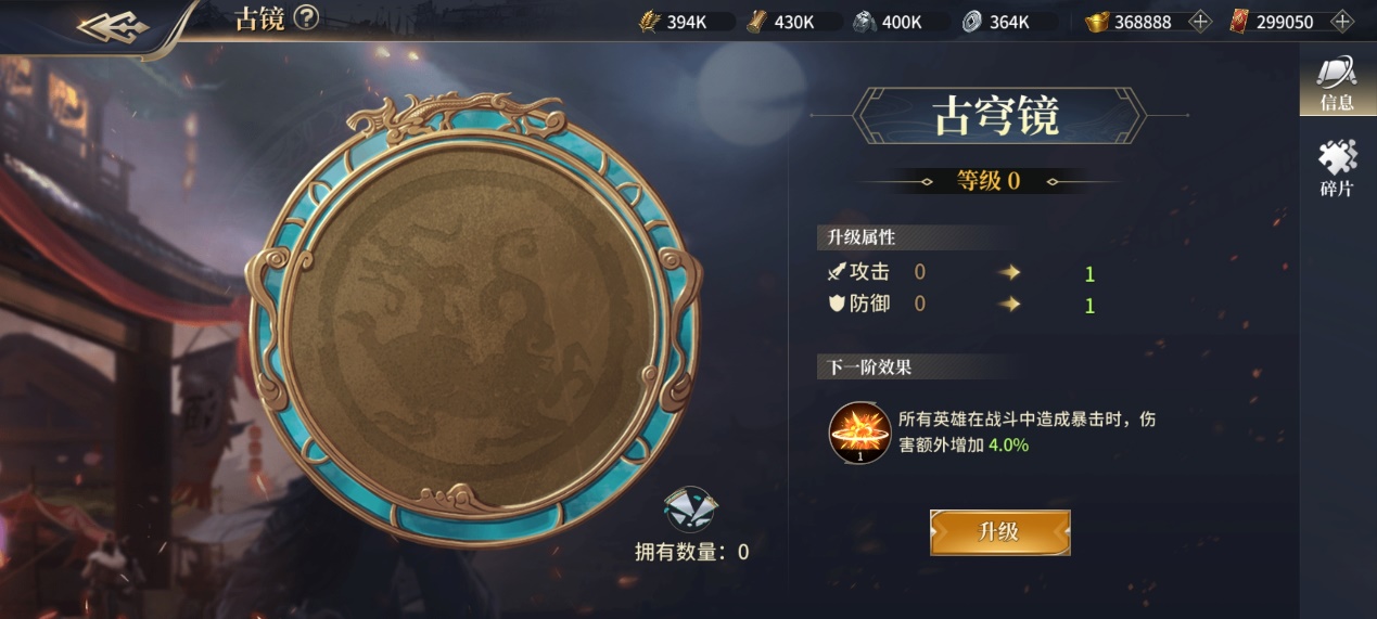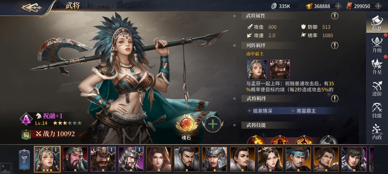武将升星需求:该名武将碎片,我们可以通关武将招贤里的对应卡池获取
