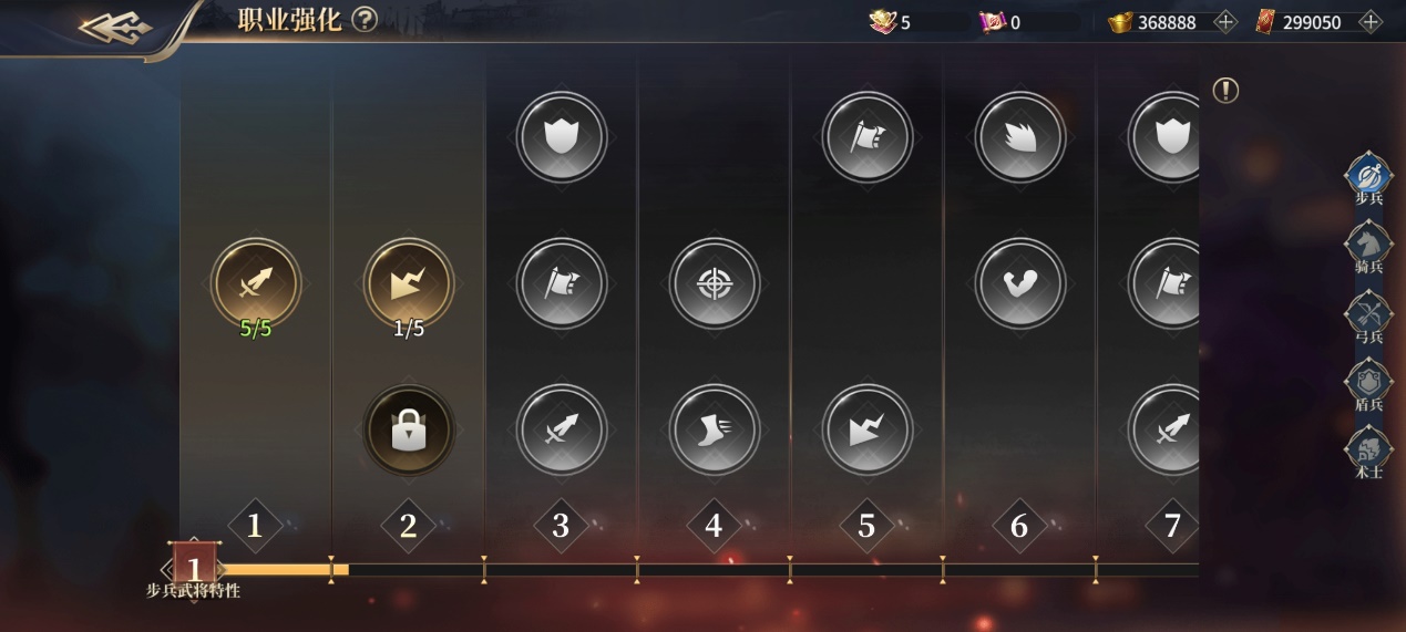 如果己方已有一套不错的阵容强度,那么针对阵容里的职业强化能使己方的阵容强度更上一层楼,职业强化所需:对应技能强化书,可通过政务、演武商店、联赛商店获得