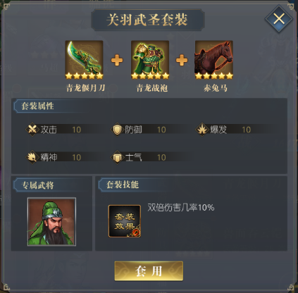 《三国吕布传说》蜀国阵营武将套装搭配一览: