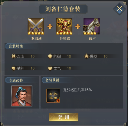刘备仁德套装:双股剑+轩辕铠+的卢
