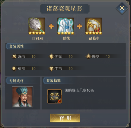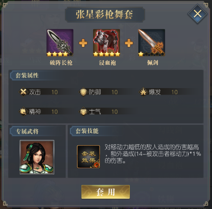 《三国吕布传说》蜀国阵营武将套装搭配一览: