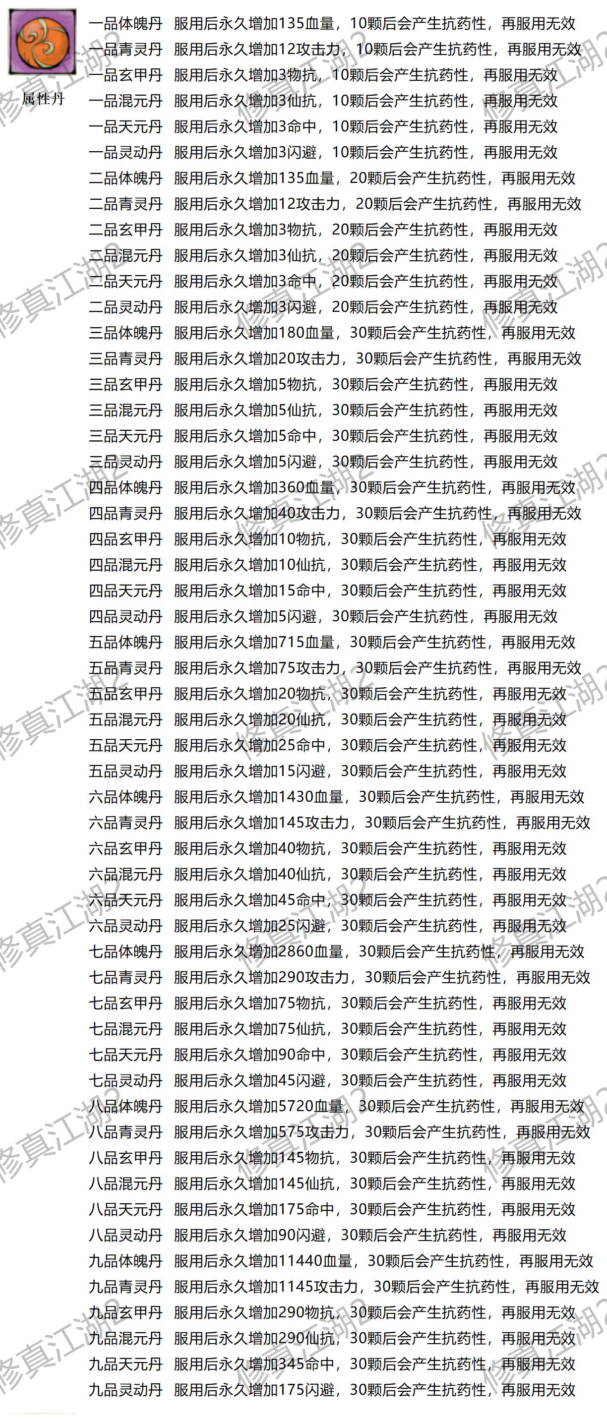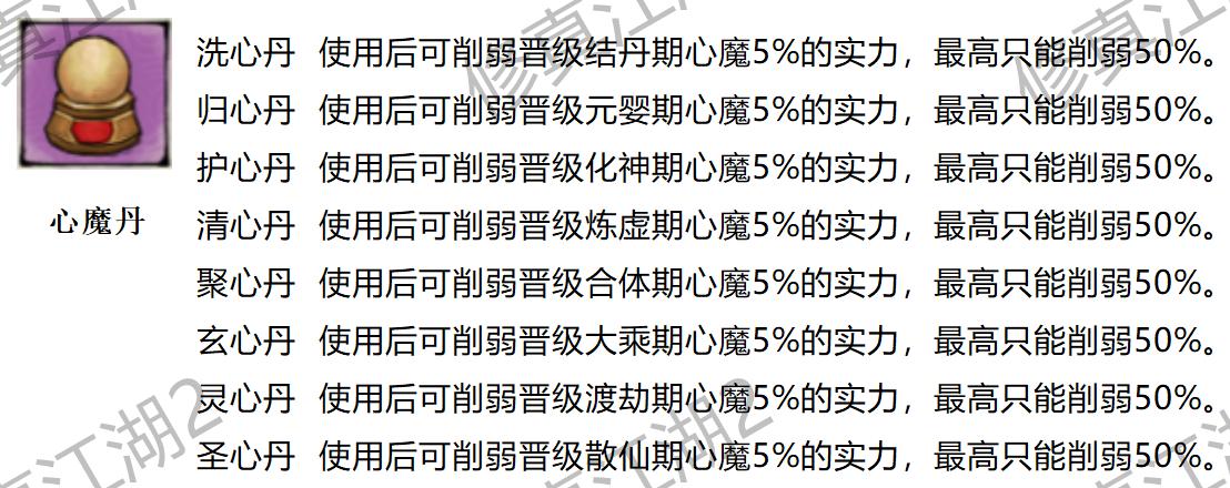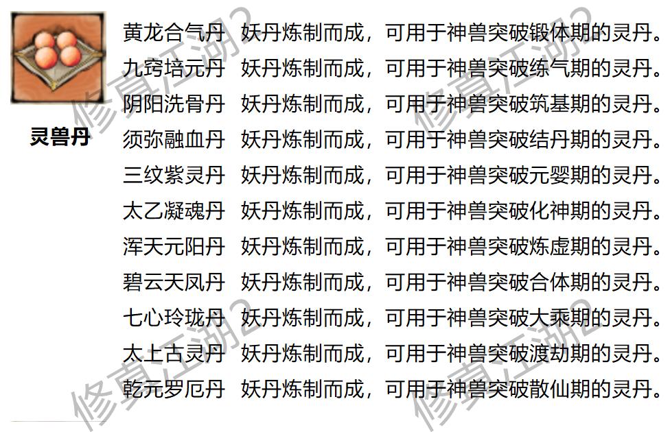 ◇ 当前可炼制丹药分为五大类:渡劫丹、心魔丹、灵兽丹、属性丹、修为丹,附上可炼制丹药功效表,以游戏内实际效果为主(毕竟很可能来不及同步嘛><),如有缺漏,欢迎在评论区留言补充。