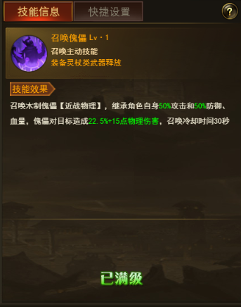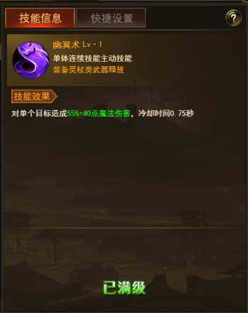 幽冥术————召唤师特色单体技能,照成百分比伤害,越级打怪不二选择。