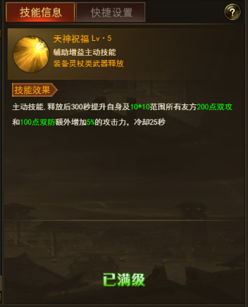 天神祝福————召唤师PK技能,神技辅助技能,为队友提供高额属性加成。