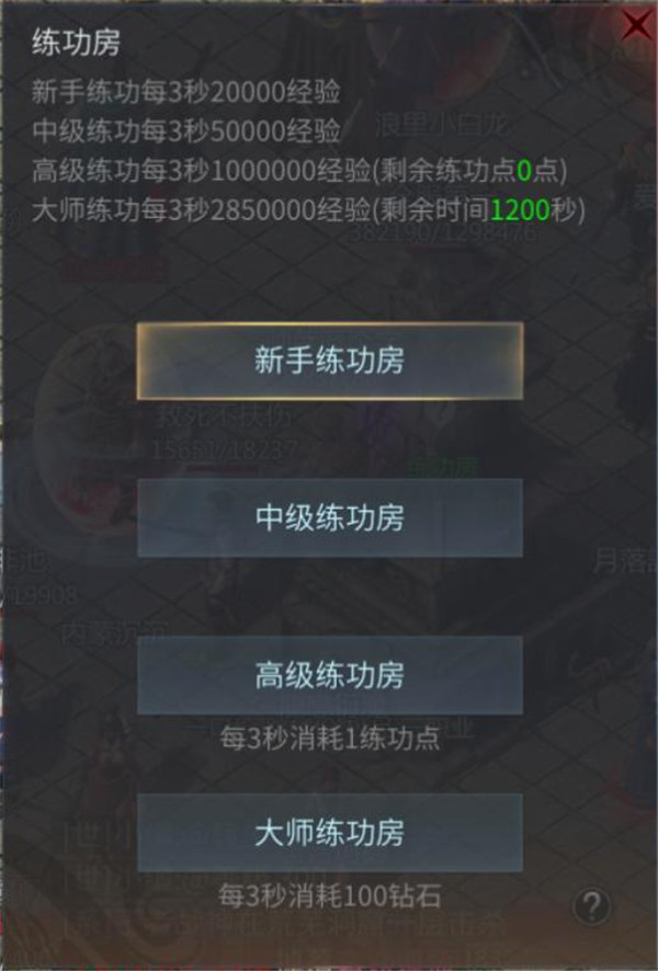 一直点击主线进行任务,第一个卡点40级很快到来。莫慌,这时候系统会提示我们进入练功房获取经验。大家点击进入即可,在这里我们不仅能够升级,还将获得前期最基础的一套装备,是我们后面打怪刷材料的基础。