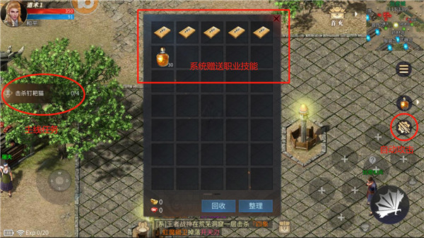 当我们进入游戏,首先要跟随主线进行一波任务升级。进入游戏后系统会自动送给我们多本职业基础技能书,保证前期过渡。