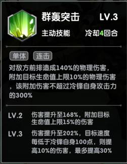 最后冷锋一技能:群轰突击,对前排英雄造成伤害,冷锋的一技能伤害最为高,且平民很容易获取,所以我们选择冷锋。