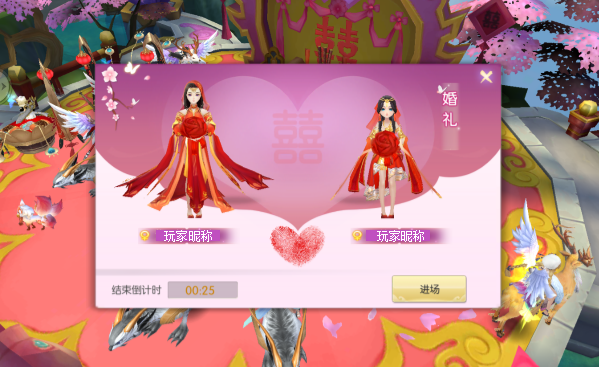 结婚场景中每10秒自动获取1次经验,每人累计可获取10次喜糖,10次红包,打开可获得丰厚奖励。燃放烟花可增加热闹度,热闹度达到520和1314出现天降红包。
