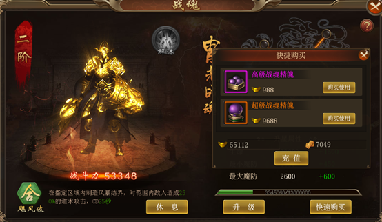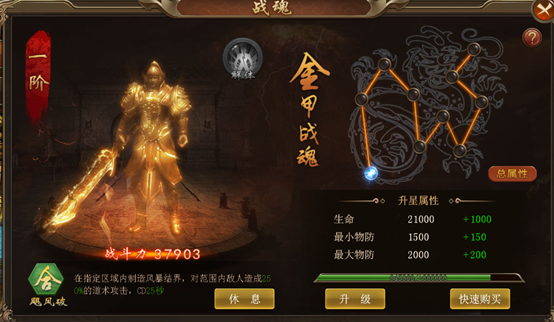 战魂系统:随着主线任务的完成,战魂系统开启,可通过打开战魂界面来进行操作。