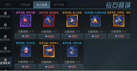 还有很多载具,分布在游戏中的各种商城,均可入手独特载具。比如说可以用游戏内获取的黑市积分,在黑市商店购买。同样游戏通行证达到一定等级也可以获取奖励载具,还有在游戏内的声望商店一样可以购买很多你喜欢的载具。当然,还有我们的钻石商城~
