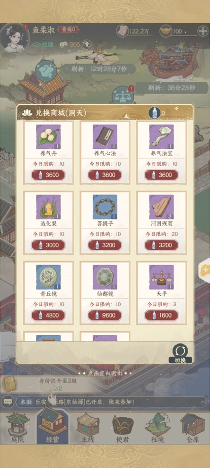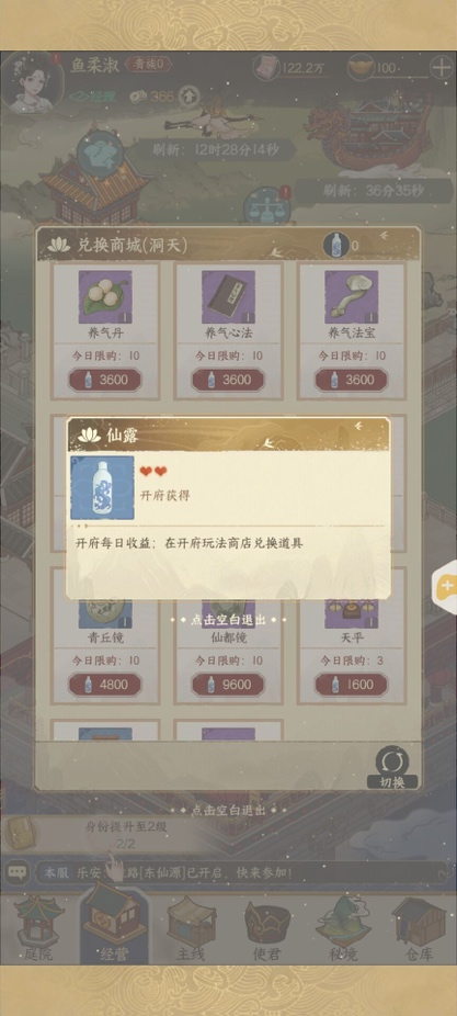 在兑换商店中,可以使用“仙露”道具兑换各种消耗道具。