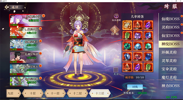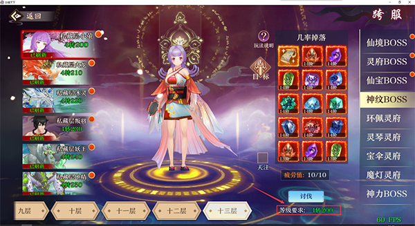 2.选择好后看右下方的等级要求,要讨伐第十三层的神纹boss需要4转200级,这时候玩家要看自己等级有没有达到