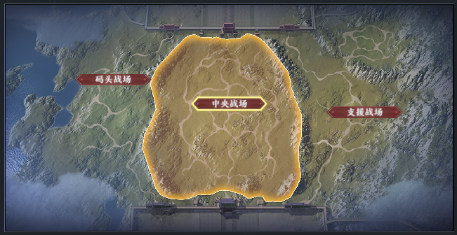 中央战场:是最比拼人数和战力的战场,有三块争夺区域,能直接对城门造成伤害,是城伤占比最高的战场。要知道,城门的血量是获胜的评判标准,城门血量先归0的一方,则失败。