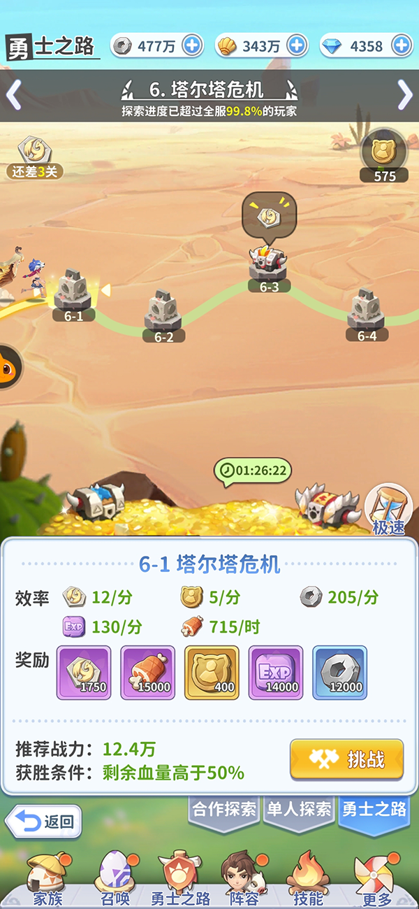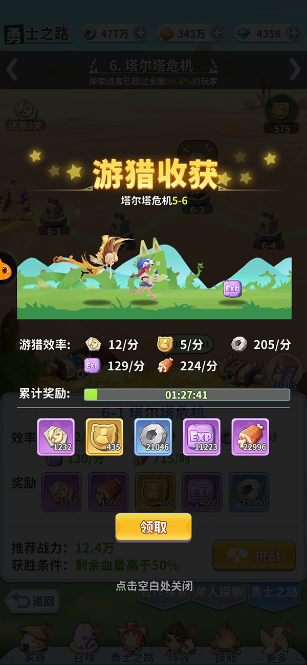 勇者之路是可以通过挂机来获得大量奖励,通关数越多,获得奖励的效率越高~
