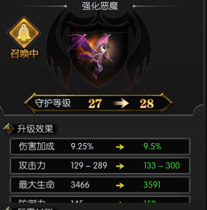 恶魔主要增强玩家攻击能力,增加伤害加成提升攻击力。作为通用型增加伤害的手段,恶魔在打怪及PK两端都有较好的表现,比较适合大家在防御力达到怪物要求时的快速清怪,以及较为强力的号用于野外PK使用。