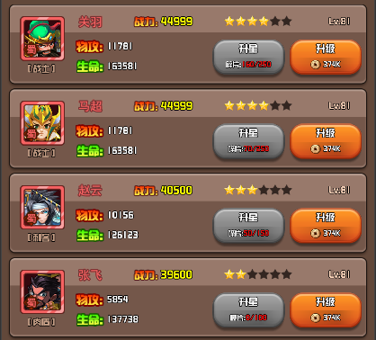 每位武将都可以通过收集同名武将的碎片来提升自己的星级。