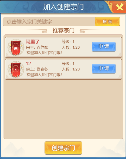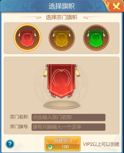 PS:创建宗门需要满足VIP2以上的同时使用100仙玉才可以创建宗门哦~
