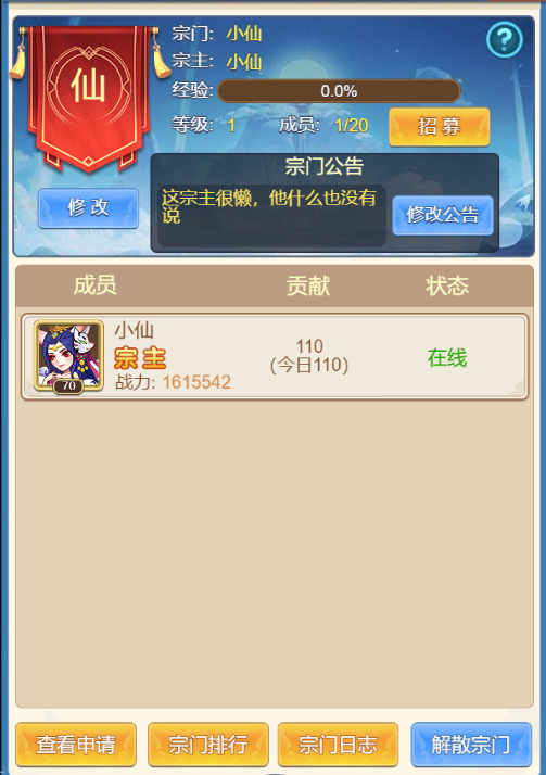小仙虽然比较菜,但还是选择创建了自己的宗门