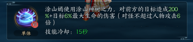 单体伤害,高频高伤,冷却短,并且附带目标6%最大生命的伤害。选择理由同上,并且它是九节狸更好更全面的上位版,不过二者并不能相互取代——因为她们两个相互配合能发挥出更强的效果。