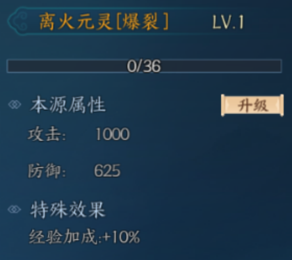 元灵的经验可通过击杀BOSS获得,每次增加10点。
