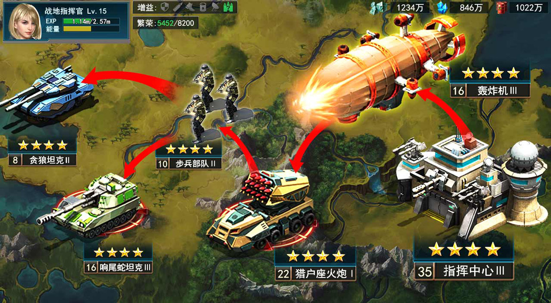 指挥官可以通过生产更高级的坦克来代替旧的坦克,这样战斗力也会较原来提高。越高级的坦克属性越高,战斗自然越强。因此,当出现更高级别坦克时,理论上是要逐步淘汰旧有的坦克。此外,大家也可以通过改造工厂将低级别的坦克进行改造升级哦。