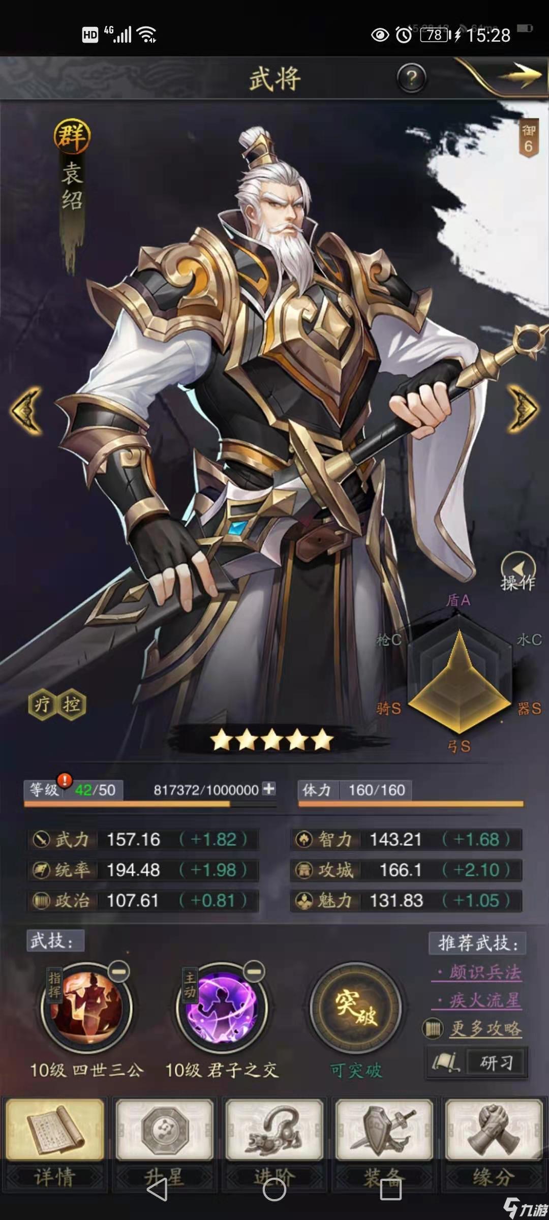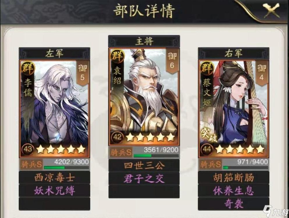 再加上还有虚弱帮忙,这就使得以袁绍的主将的队伍可以连续征战都不用担心兵力的问题,这在前期缺兵的时候非常宝贵,节约了征兵的资源,还加快了拿地的节奏。袁绍还可以搭配上破识兵法和急火流星这两个输出技能,来弥补自身输出的不足,也可以搭配上君子之交这样的防御技能,打造成铁板一块。