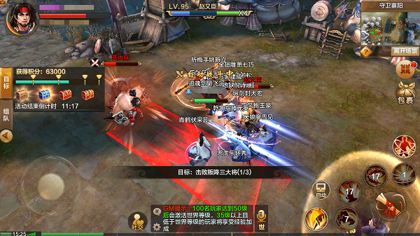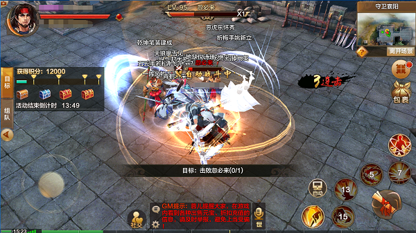 过桥后会出现任务目标击破王府守卫(X16),击破王府守卫之后需要连续击破判降三大将、蒙古大将(X2)、托雷,判降三大将只需要注意不走进叠加的AOE当中即可,找好输出位置可轻松逐个击破。