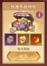 除此之外,游戏中不定期的“限时特惠”、“周限购”、“月限购”中也有很多超值礼包。主公可以根据自己的需求购买~