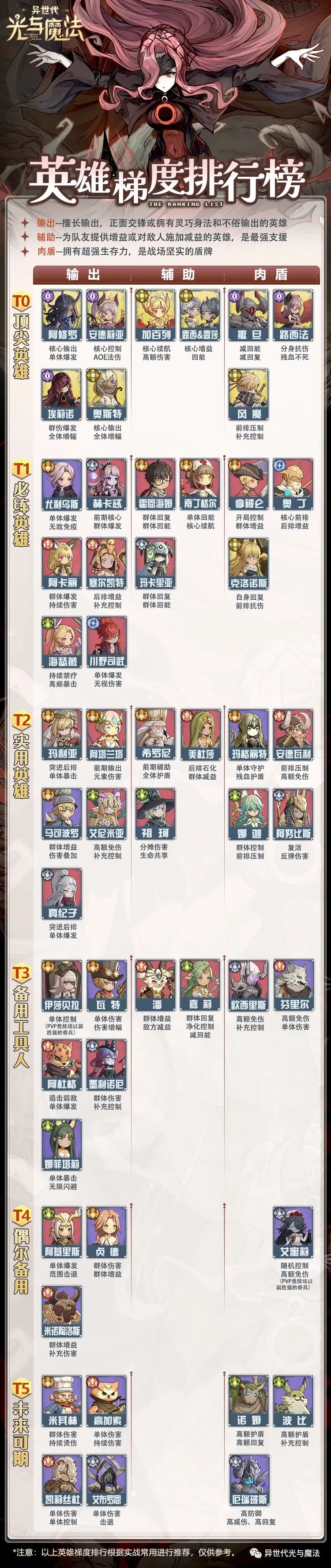 以上榜单仅供参考,千人千面,欢迎冒险者在评论区留下你的看法和建议~另外提前预告一波,还有两名新英雄已经在路上,下周就能跟大家见面了!