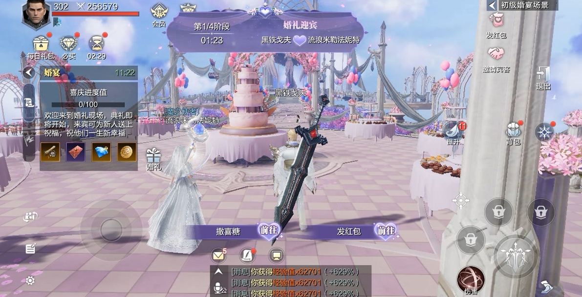 婚礼预约好了,没有宾客怎么行?进入婚宴后,新郎新娘点击【邀请宾客】按钮即可向全服发起邀请,同一时间在线的玩家都能有机会参加婚宴!接下来就是重头戏了,新婚双方会随机撒喜糖、发红包,撒喜糖可以增加祝福值,触发全场奖励,而发红包则能够为在场的宾客发放随机钻石奖励!作为一名有素质的宾客,收取了奖励肯定是要回礼的,大家在签到领奖时就可以为这对新郎新娘送上诚挚的祝福,祝福语会以弹幕的形式呈现,或者也可以在留言册中留下自己的美好祝愿。当婚宴达到某一时间,现场还会空降神秘宝箱,内含丰厚奖励哦~最后双方交换誓言,在欢呼声中成为《魔之序曲》新一对幸福的小夫妻!