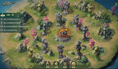 在策略游戏卧龙吟中,石兵八阵分为简单、中等、困难、极难,一个阵法里面共有16处阵法,刚开始步入阵法的主公要从最外围的阵门任意选择一处攻打,攻打成功后,就可以攻打与阵门相邻的阵位,当攻破的阵位的数量达到4个阵位时会提升我方全体的攻击、攻破8个阵位时会提升我方全体的防御、攻破12个阵位时我方全体可以获得抵挡1次伤害的护盾、攻破15个阵位时我方全体可以获得不屈,各位主公们根据每个阵位的守军,不同的攻防特性来排兵布阵,以巧破阵。