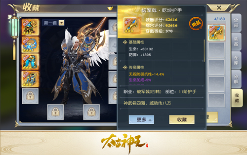 化神玩家可以在神域与神窟副本获得全新的神阶装备,神阶装备起始就是红或金色品质,大幅打破普通装备加成上限,也是神阶玩家纵横战场所向无敌的重要依仗。