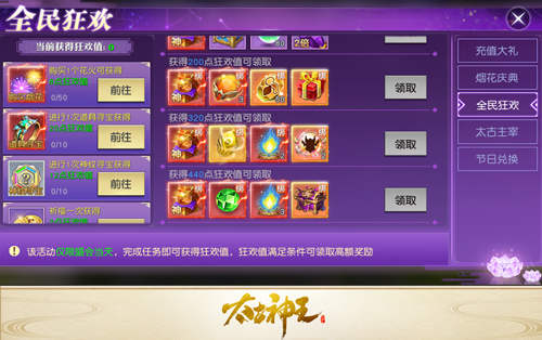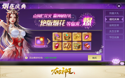 化神后还未参加过的玩家正好可以体验下升级版的全民狂欢,本次烟花庆典还新增了化神戒指合成道具“化神玄玉”,想要提升戒指等阶就快来试试手气吧!