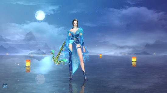 深蓝暗冰。相传是师尊用北海鲛人一族才有的暗冰丝裁制而成,上身轻柔肤感极佳,小娇穿着它在战斗时都觉得自己又美又飒。穿上它感觉自己好像战斗力又上升了呢~(坚定:这肯定不是错觉!)