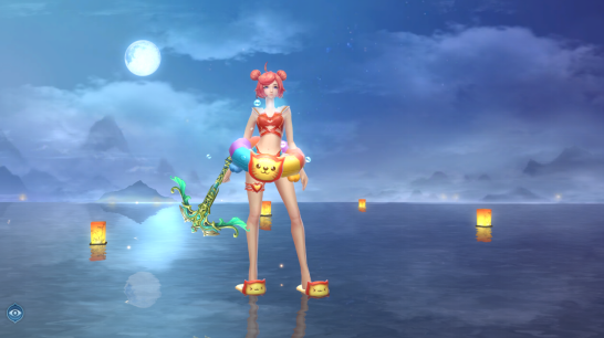 第二件,樱浪之夏。夏天当然要玩水啦~!小娇的泳衣套装可是精心设计过的,樱桃色丸子头,小脑斧泳圈和拖鞋,这彩虹配色让小娇的少女心都要泛滥啦~