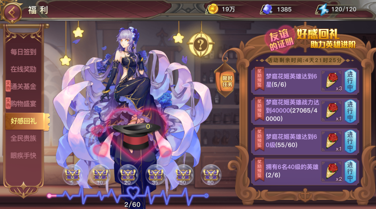 活动说明:完成限时任务获得玫瑰花,赠与花姬即可获得大量英雄碎片,鲜花等奖励