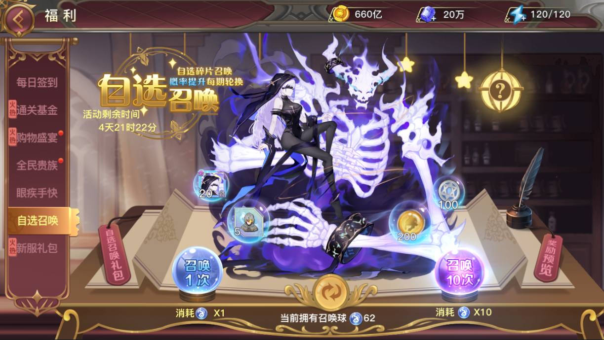 活动五、【自选召唤】自选英雄,轻松培养