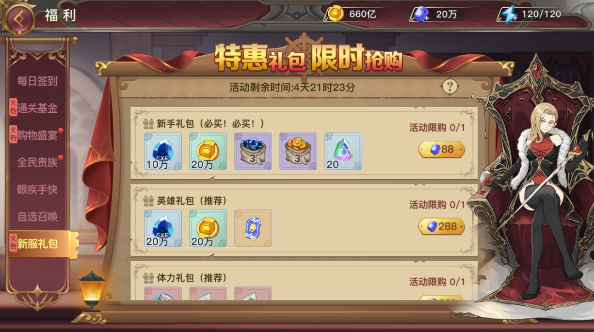 活动说明:开服限购特惠礼包,按需购买哈