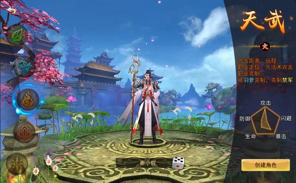 天武武学擅长远程打击敌方,造成爆炸性输出,招式绚烂,擅长片伤群攻,同时附带灼伤效果,能让敌人持续掉血。天武在团队中输出能力最强但自身血少防低,往往是敌方第一打击目标,所以需要队友给予掩护与帮助,从而更好的持续输出。