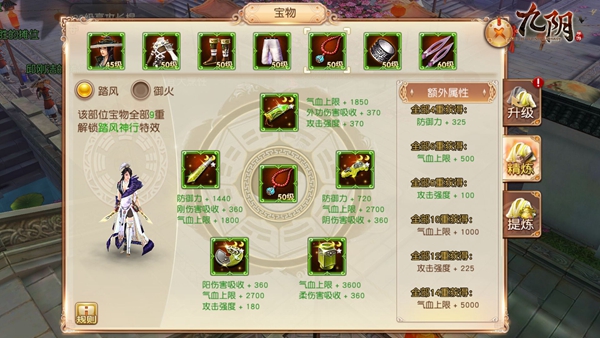 在淬炼属性的选择上,峨眉首选增加攻击比、增加攻击强度、气血、气血比的属性,其次选择防御和各类属性加伤和减伤之类属性。暴击和攻击回蓝不推荐使用因为暴击属性加的数值太少不如其他属性实用峨眉普攻速度慢攻击回蓝也不是很好用。