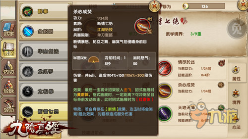从招式上看,断情好像是很简单粗暴的刀法,四阶之后尽管砍就行了。当然还是得注意虚招和招架,增加攻击才是断情的精髓所在。现在断情的价格应该没那么高了,所以有兴趣的玩家可以去学一下哦!