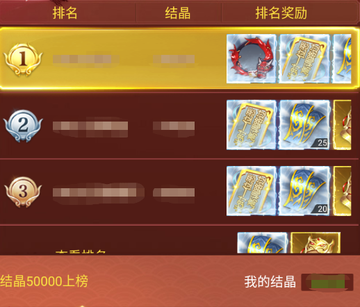 获得结晶50000即可登上排行榜,排行越高,获得的奖励就越豪华;