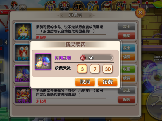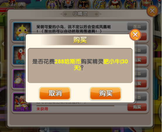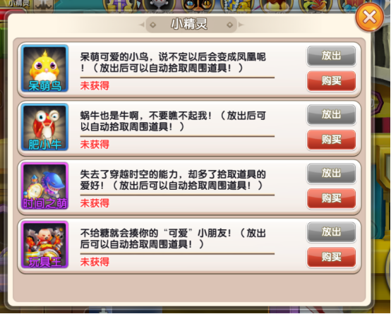 选择自己喜欢的小精灵并购买,购买后放出小精灵,他就可以帮助你自动拾取掉落的物品啦!